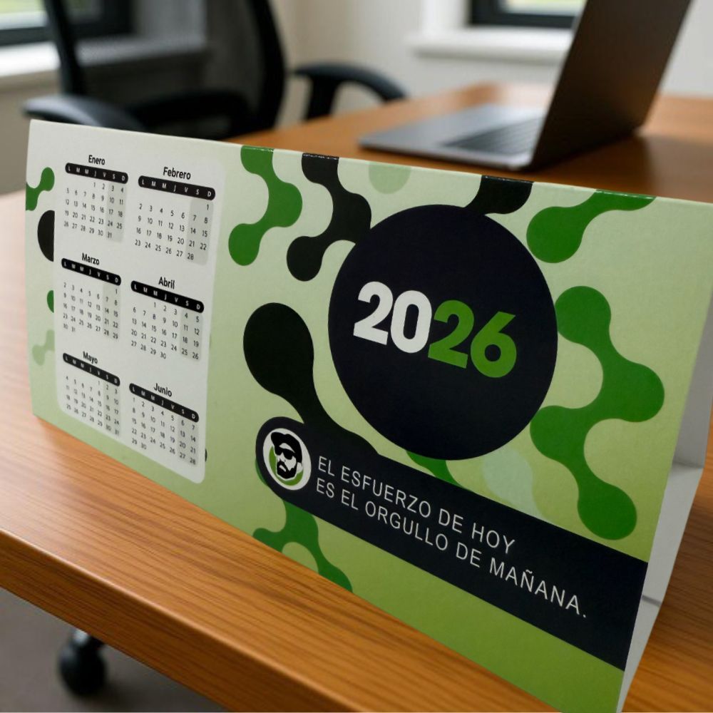 Calendarios 2026 de sobremesa personalizados con peana automontable