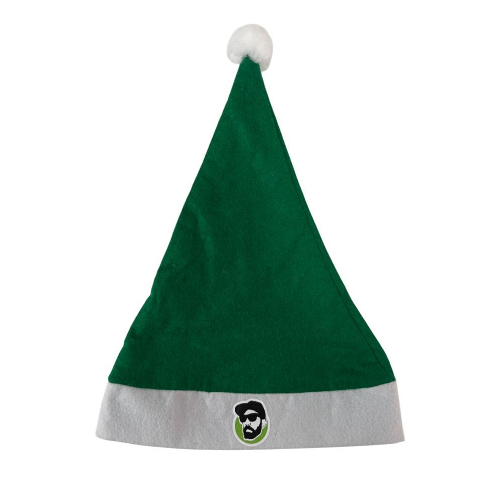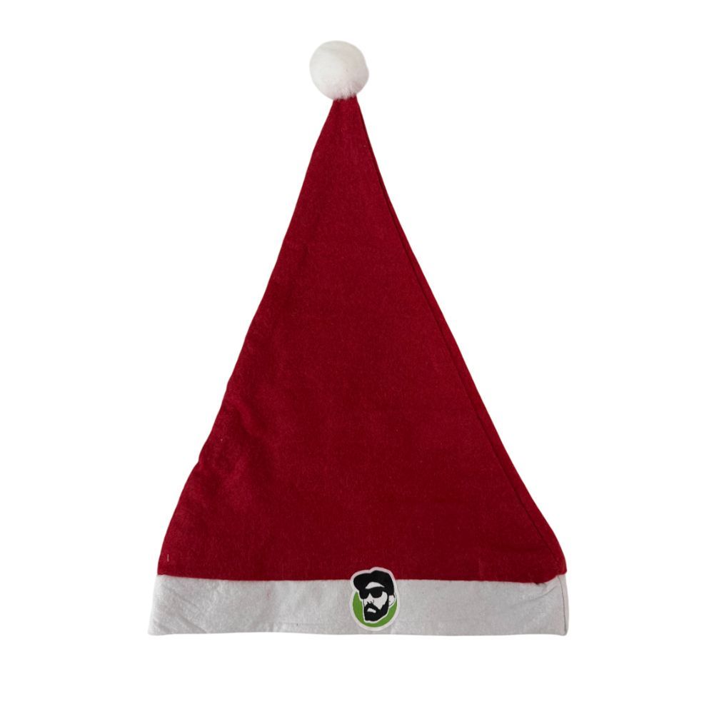 Gorro de Papá Noel personalizado con tu logo, marca o lo que quieras. Fabricado en RPET con suave banda y pom pom de color blanco. El material RPET se elabora a partir de plástico reciclado, para así fomentar la reutilización de residuos plásticos y ayudar a la sostenibilidad del planeta.